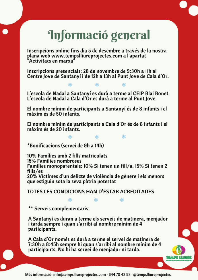 Escola de Nadal 2025 - Santanyí - Cala d'Or
