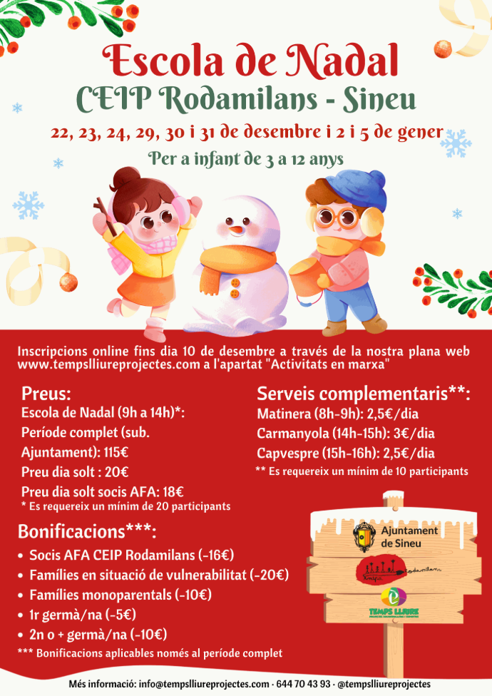 Inscripció per al període complet (SOCIS I NO SOCIS AFA) - Escola de Nadal CEIP Rodamilans
