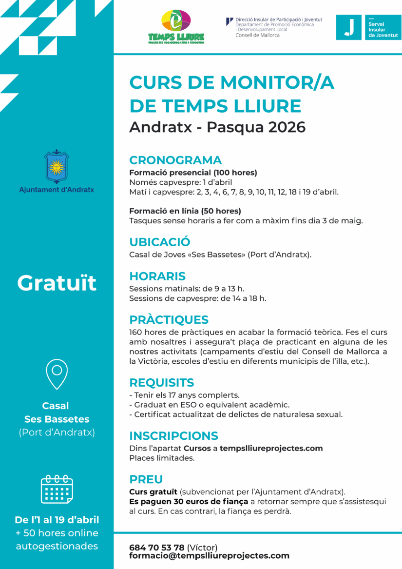 Curs gratuït subvencionat per l'Ajuntament d'Andratx